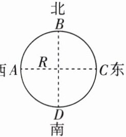 9. 如图所示,某市有一条半径为R的圆形环城高速公路,A、B、C、D分别为此公路的西、北、东和南四个端点,一辆汽车沿A→B→C→D的方向在此公路上运动,求: