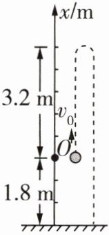 5. 如图所示,在距离地面1.8m高的位置竖直向上抛出一枚网球,观测到网球上升3.2m后回落,最后落回地面。空气阻力忽略不计,规定竖直向上为正方向。以抛出点为坐标原点建立一维坐标系,下列说法正确的是(