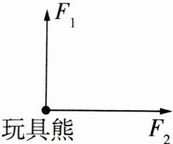 2. 如图是小明和小军两人争抢一只玩具熊的受力示意图,$F_{1} = 6N$,$F_{2} = 8N$,两力相互垂直,则玩具熊受到两人的合力为