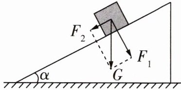 2.如图所示,重力为$G的物体静止在倾角为\alpha$的斜面上,将重力$G分解为垂直斜面向下的力F_{1}和平行斜面向下的力F_{2}$,那么(