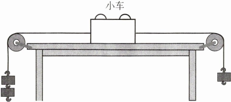 4. 小羽利用如图所示的装置探究二力平衡的条件。他在小车左边挂上2个钩码,右边挂上1个钩码,小车两边受到的拉力在同一直线上,小羽发现小车静止不动。因此他认为,小车在水平方向只受到两个拉力,这两个力大小不相等也能让小车处于静止状态。请你利用如图所示的装置,设计一个实验,证明小羽的想法是错误的。