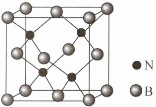 6.D 解析:¹¹B和¹⁰B互为同位素,形成的化合物在化学性质上无差异,但其物理性质不同,A项错误;该晶体结构中无自由移动的电子,不具有导电性,B项错误;由题图可知,该晶胞含4个N原子,B原子位于晶胞的顶点和面心上,故B原子的数量为8×$\frac{1}{8}$+6×$\frac{1}{2}$=4个,C项错误;由晶胞示意图可知,1个N原子与4个B原子成键,1个B原子可以和3个N原子成键,这些N原子距中心N原子等距且最近,总数为12个,D项正确。