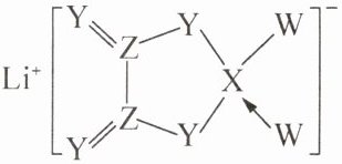 4. 已知某种锂盐的结构如图,它是一种新型锂离子电池的电解质,其阴离子由W、X、Y、Z四种同周期主族元素构成,Y原子的最外层电子数是X的次外层电子数的3倍(箭头指向表示共用电子对由W提供)。下列说法