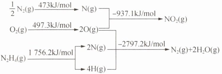A 解析:根据图示信息,可得已知反应:①$\frac {1}{2}N_{2}(g)+O_{2}(g)=NO_{2}(g)$ $\Delta H=+33.2kJ/mol$②$O_{2}(g)+N_{2}H_{4}(g)=N_{2}(g)+2H_{2}O(g)$ $\Delta H=-543.7kJ/mol$ ③$N_{2}H_{4}(l)\rightleftharpoons N_{2}H_{4}(g)$ $\Delta H=+9.7kJ/mol$ ②$× 2+$③$× 2-$①$× 2$可得目标方程式:$2N_{2}H_{4}(l)+2NO_{2}(g)=3N_{2}(g)+4H_{2}O(g)$,所以$\Delta H=-543.7× 2+9.7× 2-33.2× 2=-1134.4kJ/mol$,