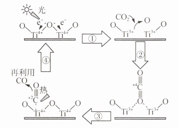 13. 为实现“碳达峰、碳中和”的目标,科学家提出以${TiO_{2}}$为催化剂,用光热化学循环分解法,达到减少大气中${CO_{2}}$量的目的,反应的机理如图所示: