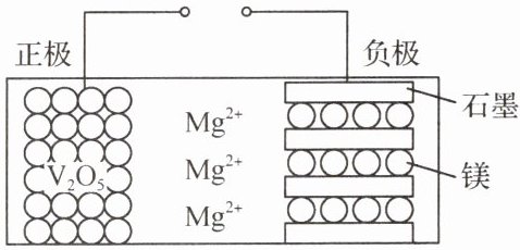 )A.放电时,正极的电极反应式为$Mg^{2+}+2e^{-}+V_{2}O_{5}= MgV_{2}O_{5}$