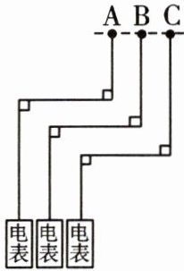 4. 如图,A,B,C三户的家用电路分别接入电表,相邻电路的电线等距排列,则三户所用电线(