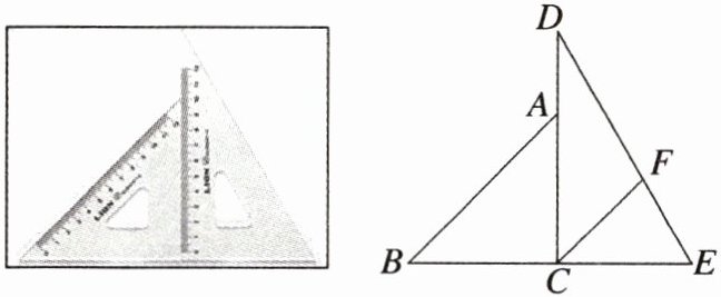 13. 将一副三角尺拼成如图所示的图形,过点 $ C $ 作 $ CF $ 平分 $ \angle DCE $,交 $ DE $ 于点 $ F $。
