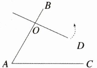 11. 如图,$ \angle A = 70^\circ $,直线 $ OD $ 与 $ AB $ 相交,$ \angle BOD = 82^\circ $。要使 $ OD // AC $,直线 $ OD $ 需绕点 $ O $ 按逆时针方向旋转至少 ______