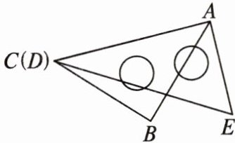 12. 将一副三角尺按如图所示的方式叠放在一起,其中点 $ C $,$ D $ 重合。固定三角尺 $ ABC $,旋转三角尺 $ AED $(其中点 $ A $ 的位置始终不变),当 $ \angle CAD = $ ______ 时,$ DE // AC $。