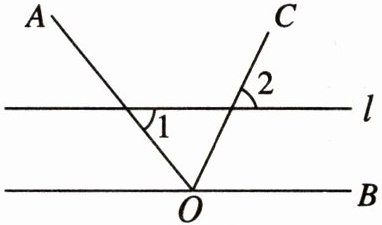 1. 如图,直线$l// OB$,$OC是∠AOB$的角平分线。若$∠1= 52^{\circ }$,则$∠2$的度数为(