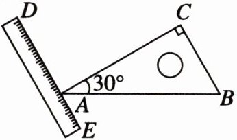 4. 如图,在直角三角尺$ABC$中,$∠C= 90^{\circ }$,$∠BAC= 30^{\circ }$,一直尺的一边$DE经过点A$。若$DE// CB$,则$∠DAB$的度数为(