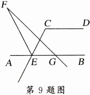 9. 如图,$AB// CD$,$∠DCE= 118^{\circ }$,$∠AEC的平分线EF与GF相交于点F$,$∠BGF= 132^{\circ }$,则$∠F$的度数是______