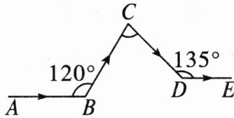 8. 如图,某人某次行车过程中共拐了三次弯,最后行车路线$DE与开始的路线AB$是平行的,则$∠C$的度数是(