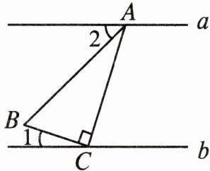 6. 如图,$a// b$,将一个含$30^{\circ }$角($∠BAC= 30^{\circ }$)的三角尺按图中方式放置,其中顶点$A和C分别落在直线a和b$上。若$∠1= 20^{\circ }$,则$∠2$的度数是(