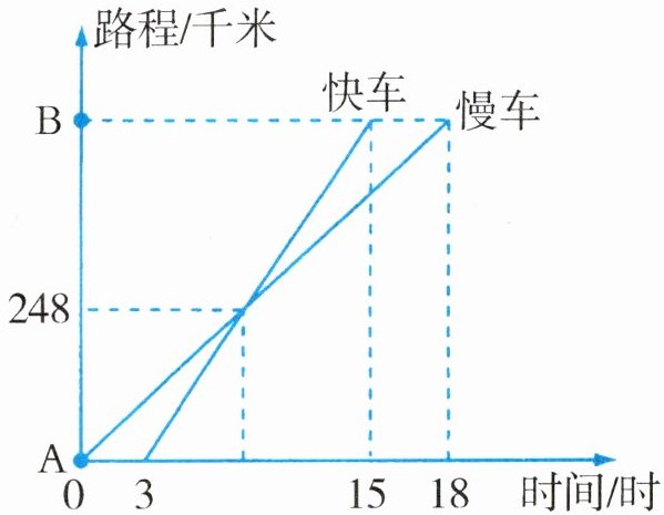 5. 慢车和快车沿相同路线从A地到B地,所行的路程与时间的关系如下图所示,那么慢车比快车早出发(