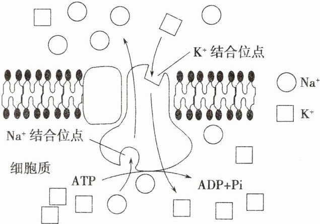 (2)如图是红细胞膜上的Na⁺、K⁺-ATP酶的结构示意图。