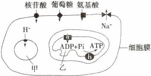 6. 如图表示某细胞部分结构,甲、乙为细胞器,a、b为膜上的物质或结构。下列有关叙述正确的是 (