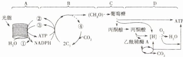 )A.过程A和过程D的生物化学反应均只发生在生物膜上