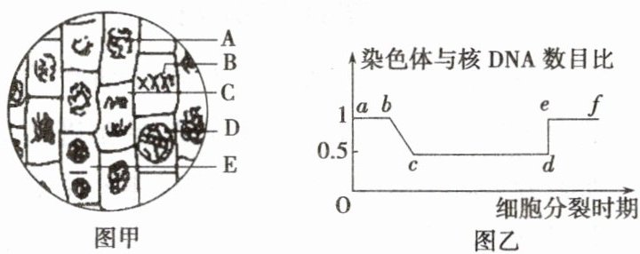 (答一点)。(2)用图甲的字母 A~E 表示有丝分裂过程的顺序是