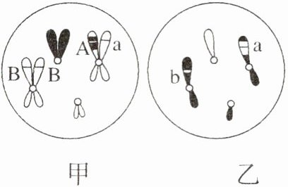 C 图甲细胞中没有同源染色体,染色体散乱地分布在细胞中,处于减数分裂Ⅱ前期,该细胞称为次级精母细胞,细胞中含有8条染色单体,A错误;由图中染色体形态可以看出,乙细胞和甲细胞可能来自同一个初级精母细胞,该初级精母细胞的基因型可以为AAaaBBbb,B错误;该细胞在减数分裂Ⅰ后期,移向细胞一极的基因可能是AaBB或Aabb,C正确;因发生了互换,该细胞经减数分裂形成的4个精子基因型分别为AB、aB、Ab和ab,D错误。故选C。