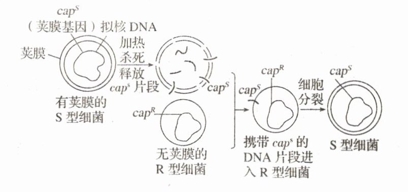)A.携带$cap^{s}$的DNA片段能够进入R型细菌并整合到R型细菌的拟核DNA上