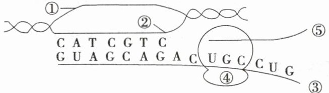 1. B A. 图示过程包括转录和翻译,该过程是基因的表达过程,A 正确;B. 参与图示过程的 RNA 有 mRNA(翻译的模板)、rRNA(参与构成核糖体)和 tRNA(转运氨基酸)共 3 种类型,B 错误;C. 有丝分裂的中期和后期染色体高度螺旋化,一般不能转录,C 正确;D. ②表示 DNA,基本单位是脱氧核糖核苷酸,⑤表示多肽,基本单位是氨基酸,D 正确。故选 B。