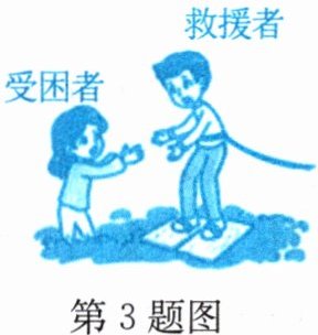 3. 有市民在湿地劳动时不慎陷入淤泥无法脱身,救援者将宽大的木板平绑在鞋底,顺利走到受困者身边,如图所示。受困者的质量为50kg、对淤泥的压强为$p_{1}$,救援者连同木板的总质量为80kg、对淤泥的压强为$p_{2}$,淤泥处处相同,则(