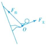 1. 攀岩是年轻人非常喜欢的一种运动,如图是一名攀岩运动员拉着绳子停在峭壁上的简化图,请你以运动员重心O为作用点,在图中画出峭壁对运动员的支持力和绳子对运动员的拉力。