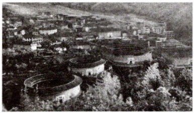 被誉为“世界上独一无二的神话般的山村建筑模式”的土楼,以石为基,以生土为主要材料,掺石灰、细砂、糯米浆、红糖汁、竹片、木条等,经反复舂压、夯筑而成。土楼是几次中国历史动荡和民众大迁徙的产物。读图,完成5~6题。