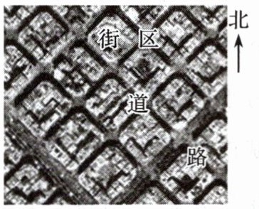 (2)华北地区冬季盛行西北风,夏季盛行东南风,图示道路走向(西北-东南走向和东北-西南走向)与盛行风向基本一致,有利于空气流通,改善通风条件;道路走向也有利于建筑物采光。