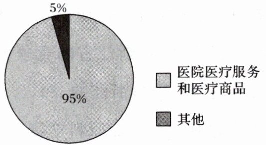 7. 从产业结构图看,医院医疗服务和医疗商品占95%,其他仅5%,说明产业结构集中在传统医疗领域,较为单一,选D。