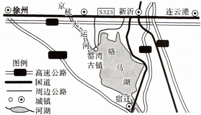 窑湾古镇西依大运河,东临骆马湖,三面环水。秦汉时,作为军需品烧窑处,周边窑多,故称窑湾。古镇鼎盛于明清时期,为重要的商品集散地。读窑湾古镇地理位置图,完成3~4题。