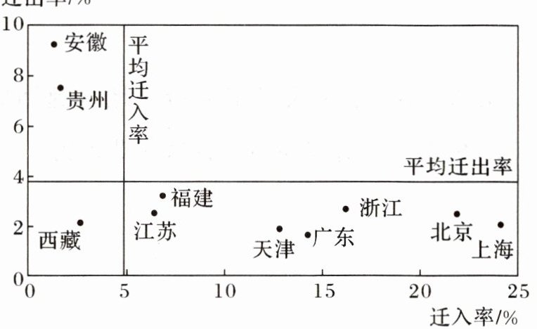 1.造成安徽人口迁出率高于贵州的主要原因是安徽(