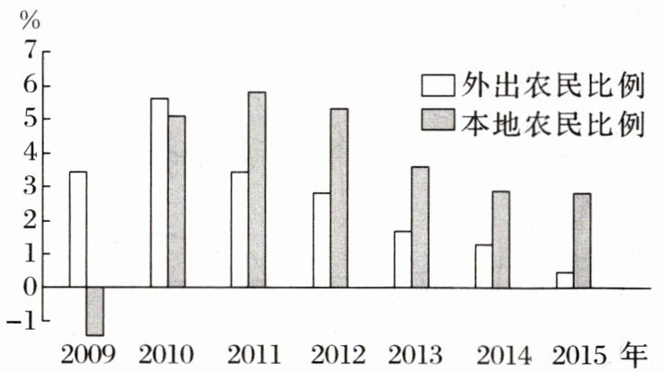 下图为2009—2015年我国农民工流动状况统计图。读图,完成7~8题。