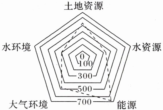 下图为江苏省江阴市各种资源可承载规模上限(单位:万人)示意图。读图,完成1~2题。