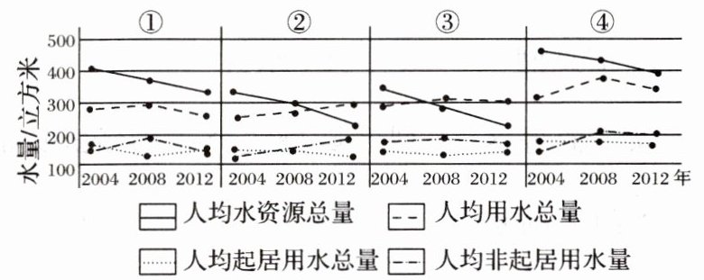 8.在各种自然资源中,对人口容量影响最为明显的是水资源。据下图判断,四市中人口数量尚未达到人口最大容量的城市代码是(