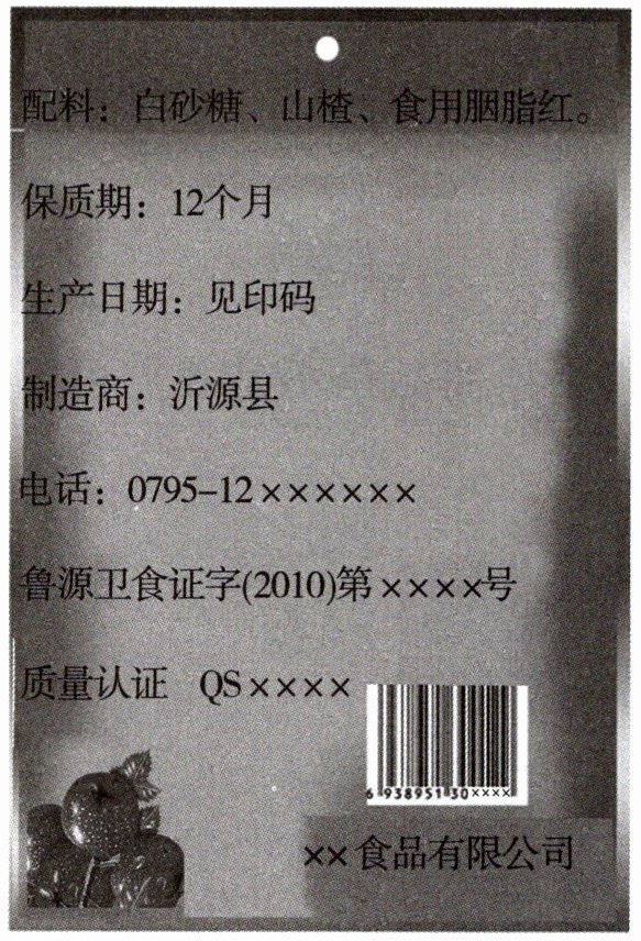 1. 配料:白砂糖、山楂、食用胭脂红;