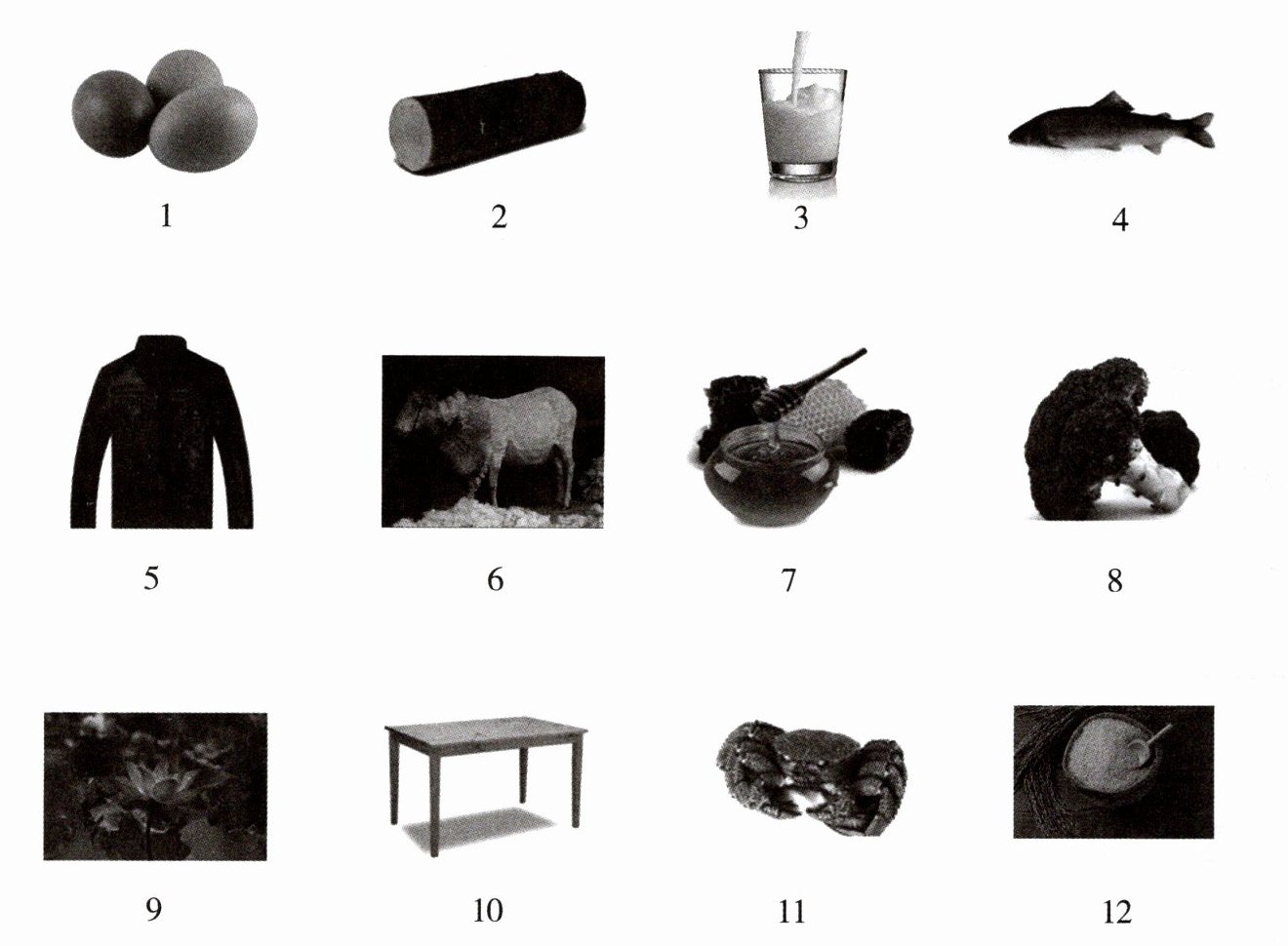 种植业:8、9、12 畜牧业:1、3、5、6、7 林业:2、10 渔业:4、11 示例:种植业:大豆、黄瓜、芹菜等。