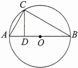 1. 解:因为$\angle ACB$是半圆上的圆周角,所以$\angle ACB = 90^{\circ}$,即$\triangle ACB$为直角三角形。由射影定理得$CD^{2}= AD\cdot DB = 2× 8 = 16$,则$CD = 4$,$AC^{2}= AD\cdot AB = 2× 10 = 20$,则$AC = 2\sqrt{5}$,$BC^{2}= BD\cdot AB = 8× 10 = 80$,则$BC = 4\sqrt{5}$。