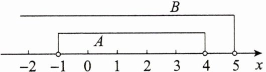 (4) 因为 $ A = \{ x | - 1 < x < 4 \} $,$ B = \{ x | x - 5 < 0 \} = \{ x | x < 5 \} $,用数轴表示集合 $ A $,$ B $ 如图所示。