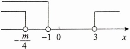 (2) 集合 $ A = \{ x | x < - 1 $ 或 $ x > 3 \} $,$ B = \{ x | 4x + m < 0 \} = \{ x | x < - \frac{m}{4} \} $,在数轴上表示出集合 $ A $ 与 $ B $,如图所示。
