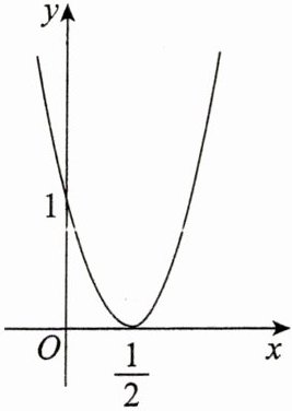 (2) 因为方程$4x^{2}-4x+1= 0有两个相等的实根x_{1}= x_{2}= \frac{1}{2}$,作出函数$y= 4x^{2}-4x+1$的简图,如图所示。
