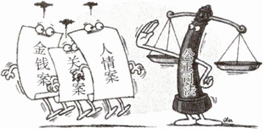(3) 观察材料二中漫画,请你谈谈如何做到公正司法?