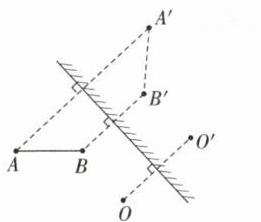 7. 如图所示,$O'$是O在平面镜中所成的像,请在图中画出平面镜的位置,并画出线段AB在该平面镜中所成的像。