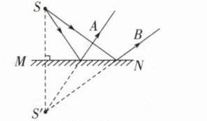 3. A、B为某一发光点S发出的光线经平面镜MN反射后的两条反射光线,如图所示。请作出这两条反射光线的入射光线,并确定发光点S的位置。