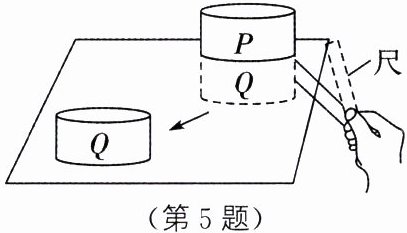 5. 如图所示,棋子P、Q叠放在一起静止在水平桌面上,用尺将Q快速水平击打出去,则(