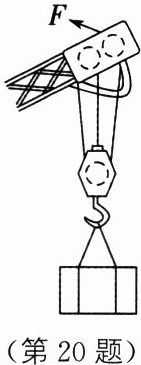 20.(9分)如图所示,塔式起重机上的滑轮组将重为$1.2×10^{4}N$的重物吊起,在20s内重物匀速上升2m,滑轮组的机械效率为80%。