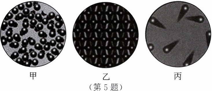 5. 如图所示为物质在三种不同状态下的分子模型。下列说法中,正确的是(