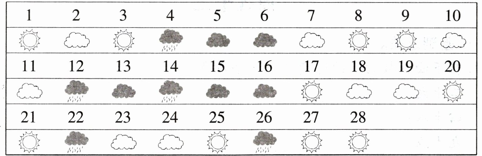 三、下面是同学们记录的2月份天气情况表。请根据图表,回答问题。